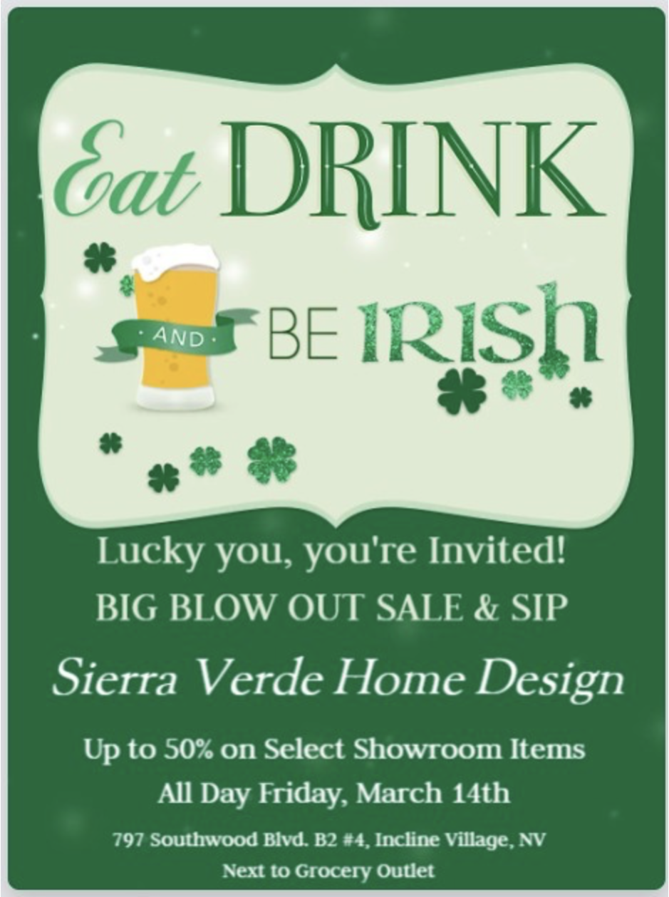 Join us for our St. Patrick's Day BIG BLOW OUT SALE & SIP on drinks while you shop! There will be food, drinks, games, music and major discounts all day from open to close, 9am to 5pm.