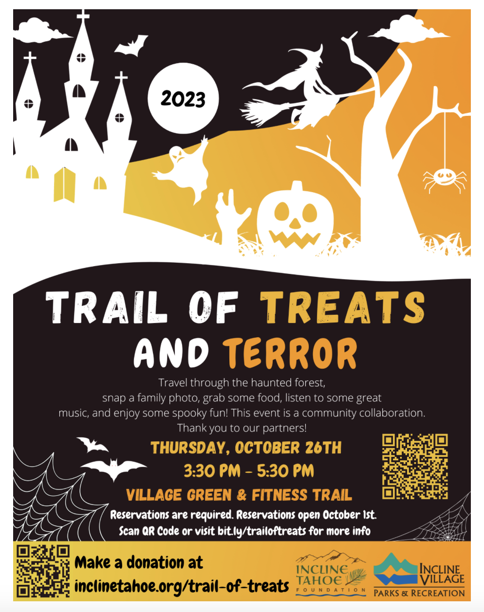 This year's event will be held in the same location (Village Green, through the Fitness Trail) with community partners (this could be YOU!) decorating sections of the trail and distributing candy to families as they travel the trail. The event is set to take place Thursday, October 26th from 3:30pm – 5:30pm (reducing the time by a half hour due to feedback from last year).