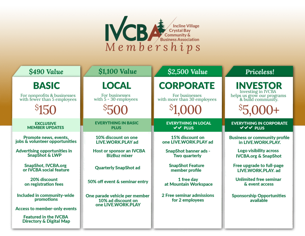 IVCBA is the community and business association dedicated to building community and growing cohesiveness for the sustainability of Incline Village and Crystal Bay, Nevada.